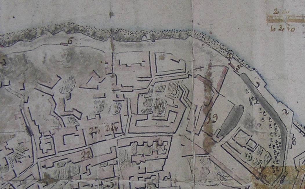 Fase 2. En torno a 1720 se ejecuta un parapeto entre el foso seco y la zona de San Jerónimo en la playa de la Peña. Esta obra podría ser, en el punto que estudiamos, una reforma de la construcción anterior ya existente. Así, se puede identificar con el parapeto que recrece ligeramente retranqueado el lienzo que discurre justo al este del torreón.