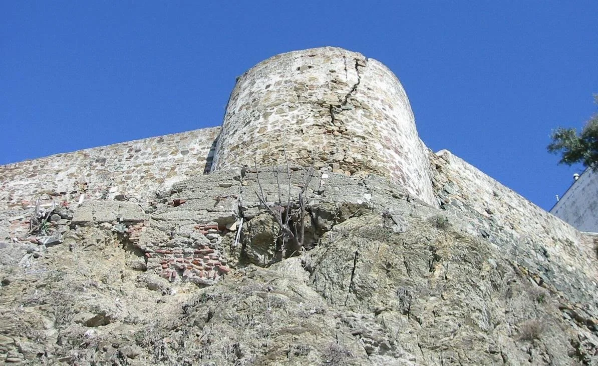 Fase 1. Construcción del torreón y los lienzos aledaños, en un momento indeterminado (islámico o portugués de los siglos XV-XVI). Hemos de tener en cuenta que en fechas recientes se efectuó una excavación arqueológica por la empresa Arqueotectura S.L.L. al pie de estas estructuras, con motivo de diversas obras de infraestructuras, que dejó al descubierto restos de viviendas bajomedievales del arrabal de Enmedio edificadas extramuros al pie del cortado.