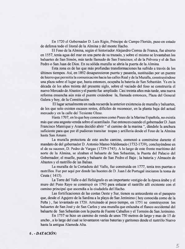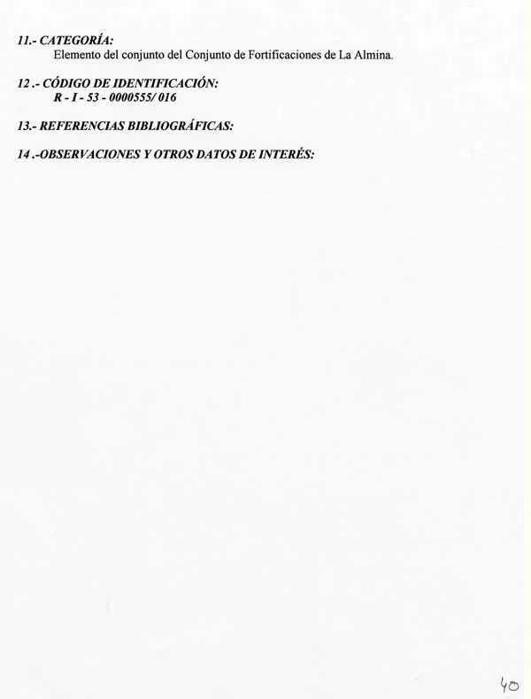 Información extraída del Plan Especial de Protección de Conjunto Histórico de las Fortificaciones del Recinto de la Almina (autores: Gurriarán Daza, García Villalobos, Pascual Origosa, Muñoz Marín)