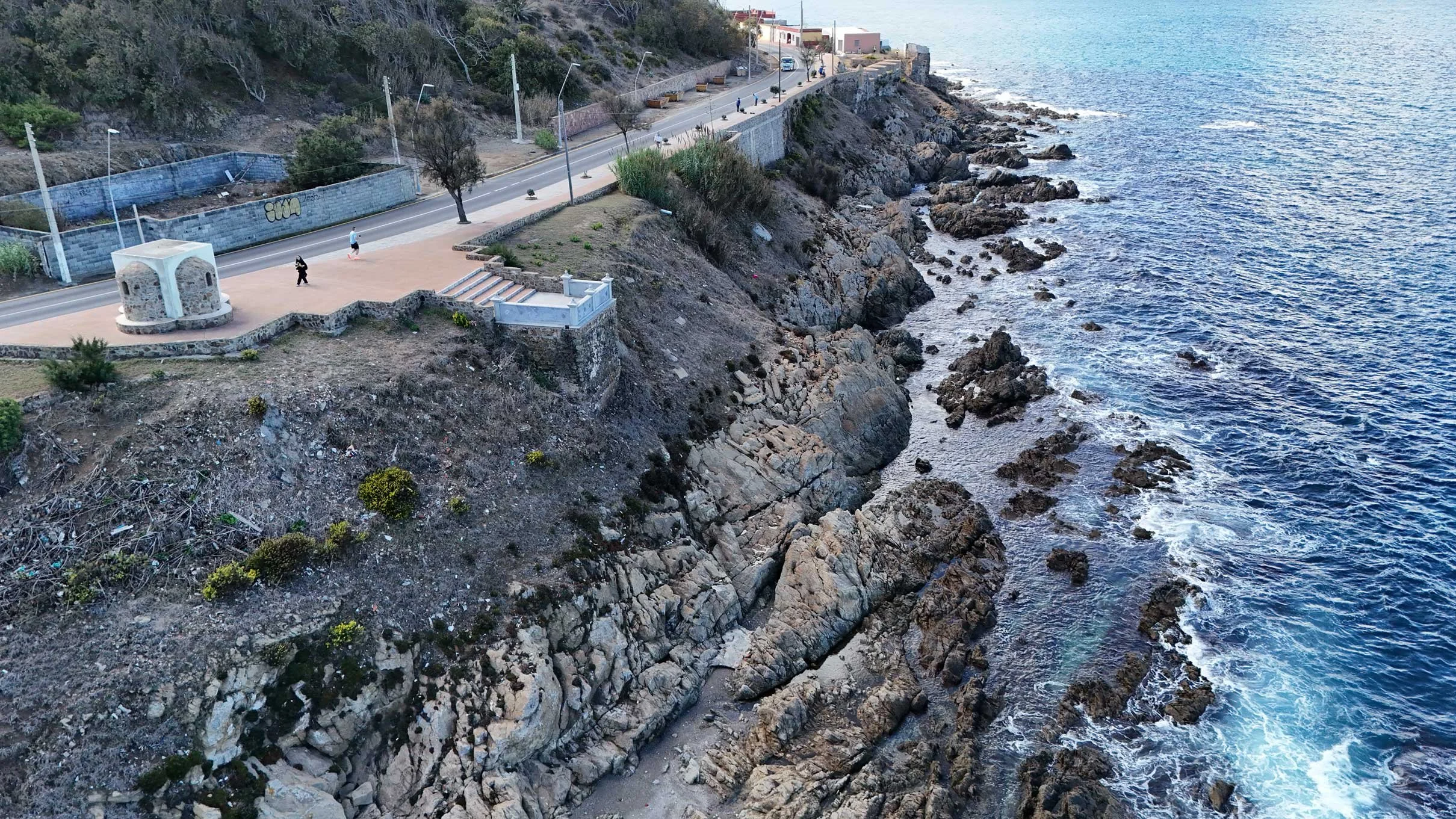 Esta torre vigía es la guarnición de un lienzo de muralla, que está coronado por un parapeto de medio metro de espesor, a lo largo de cuyo trazado (más de 2 km.) se distribuyen varios fortines y baterías, con la idea de proteger y controlar las calas y atracaderos y así dar aviso.